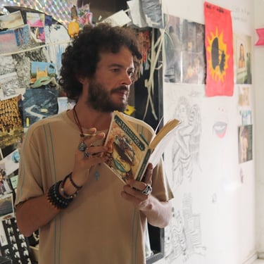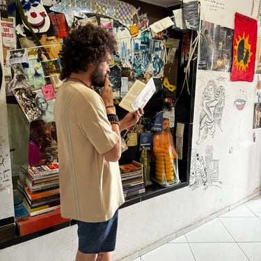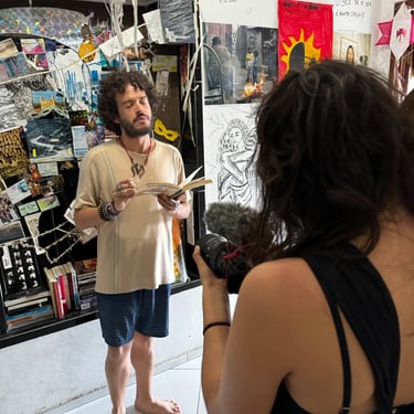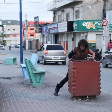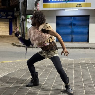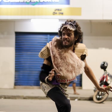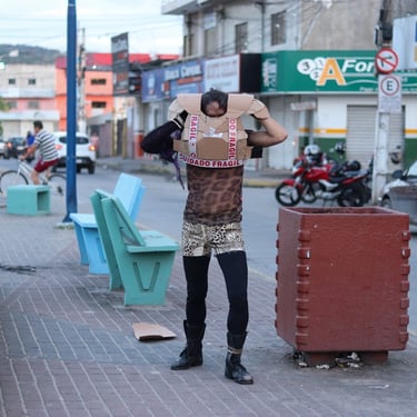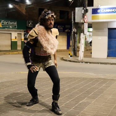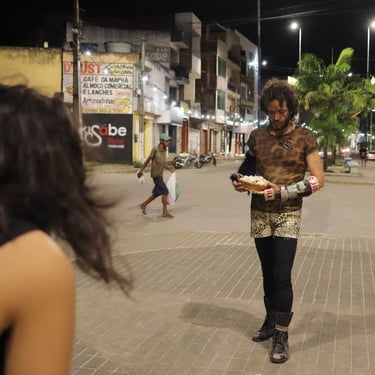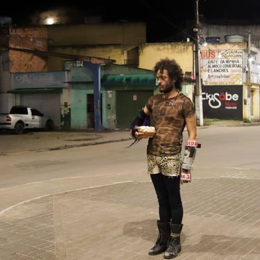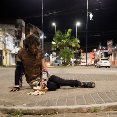 Em 2023, recebi o convite para participar do Deslocamentos. Depois de debates, estudos e observações, o próximo passo foi a escolha dos poemas a fim de compor a dramaturgia da vídeoperformance. À medida que os versos eram lidos, percebemos que eles podiam abranger os temas propostos pelas ações do Projeto. Através dos encontros, os textos foram incorporando em seu discurso reflexões acerca do indivíduo e dos espaços que ocupa. Além disso, trazendo também a questão da memória e a influência que o escritor exerce sobre meu processo literário e minha relação com o Mundo, surge "A rainha dos cárceres da Grécia", de Osman Lins. Este livro é o ponto de partida para a construção da personagem, que vai absorvendo todo o estado de abandono ao longo de seu trajeto na Avenida Mariana Amália.
