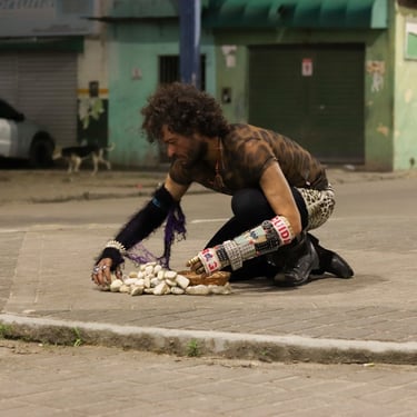 Agora, estendendo novamente nossa existência, voltamos a ocupar as vias e veias abertas de Mariana, que fazem o coração da Cidade pulsar, em meio a "tantas almas esticadas no curtume...". Com o nome de '4 Poemas Para Mariana', levamos o Corpo e a Palavra num cruzamento a céu aberto, iluminando as ruas e os labirintos do vazio e do esquecimento.