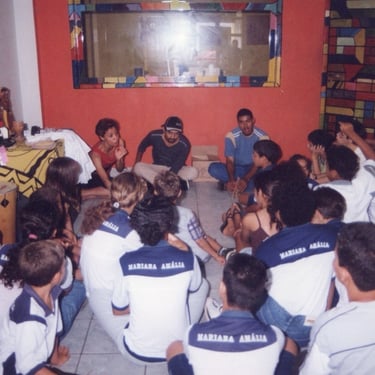 Mesmo quando não nomeada, a universidade habitava o imaginário do grupo como uma espécie de fantasma à espreita – uma presença difusa, mas determinante, que inscrevia parâmetros de julgamento estético e influenciava, ainda que de forma implícita, os rumos da criação. Aquele grupo de atores e atrizes queria ocupar um lugar na cena pernambucana, obter reconhecimento, fazer temporadas em outras cidades. No entanto, apesar de pensar nessa vida fora da cidade, percebeu que se fortaleceria ao desenvolver sua aldeia. As ações político-pedagógicas ocupavam cada vez mais espaço na vida do grupo, que passou a fazer mais pela cultura da cidade do que o Poder Público.