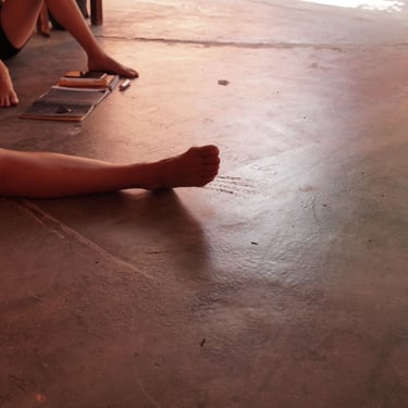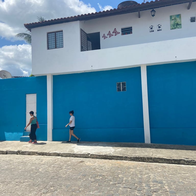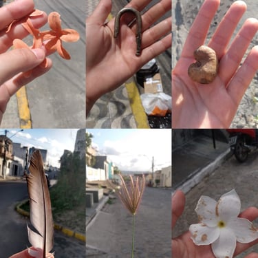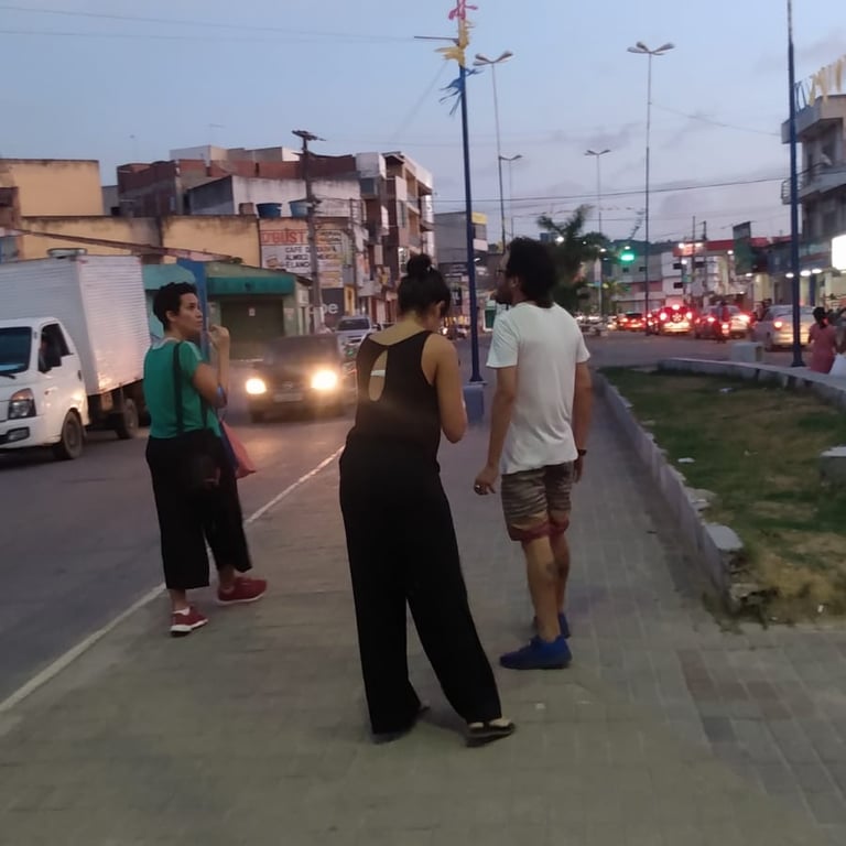 Encontro na Casa Mosaico para primeiras práticas corporais. Soltar o corpo, relacionar-se com o espaço, caminhar e observar através de diferentes pontos de vista foram algumas das ações desenvolvidas na prática. À tarde, seguimos para a rua, a fim de conhecer os espaços relatados no dia anterior e criar as primeiras relações com eles junto com a câmera. Também captamos algumas sonoridades nestes espaços. Fomos ao Casarão Deus e Melo, Avenida Mariana Amália, Feira, e Praça João Pessoa. Algumas pontuações feitas por Gabriela nesse momento e anotadas por Sammia foram: