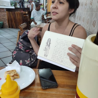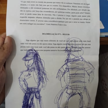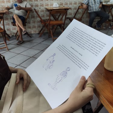 Seguir pessoas: Encontro na rua. Caminhar, observar, imaginar e criar personagens reais. Após a atividade, nos reunimos na lanchonete Peixe, uma das mais antigas da cidade, e compartilhamos nossas histórias.